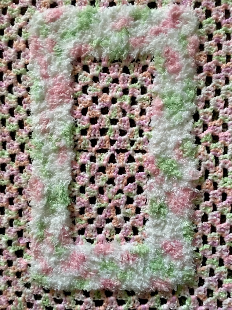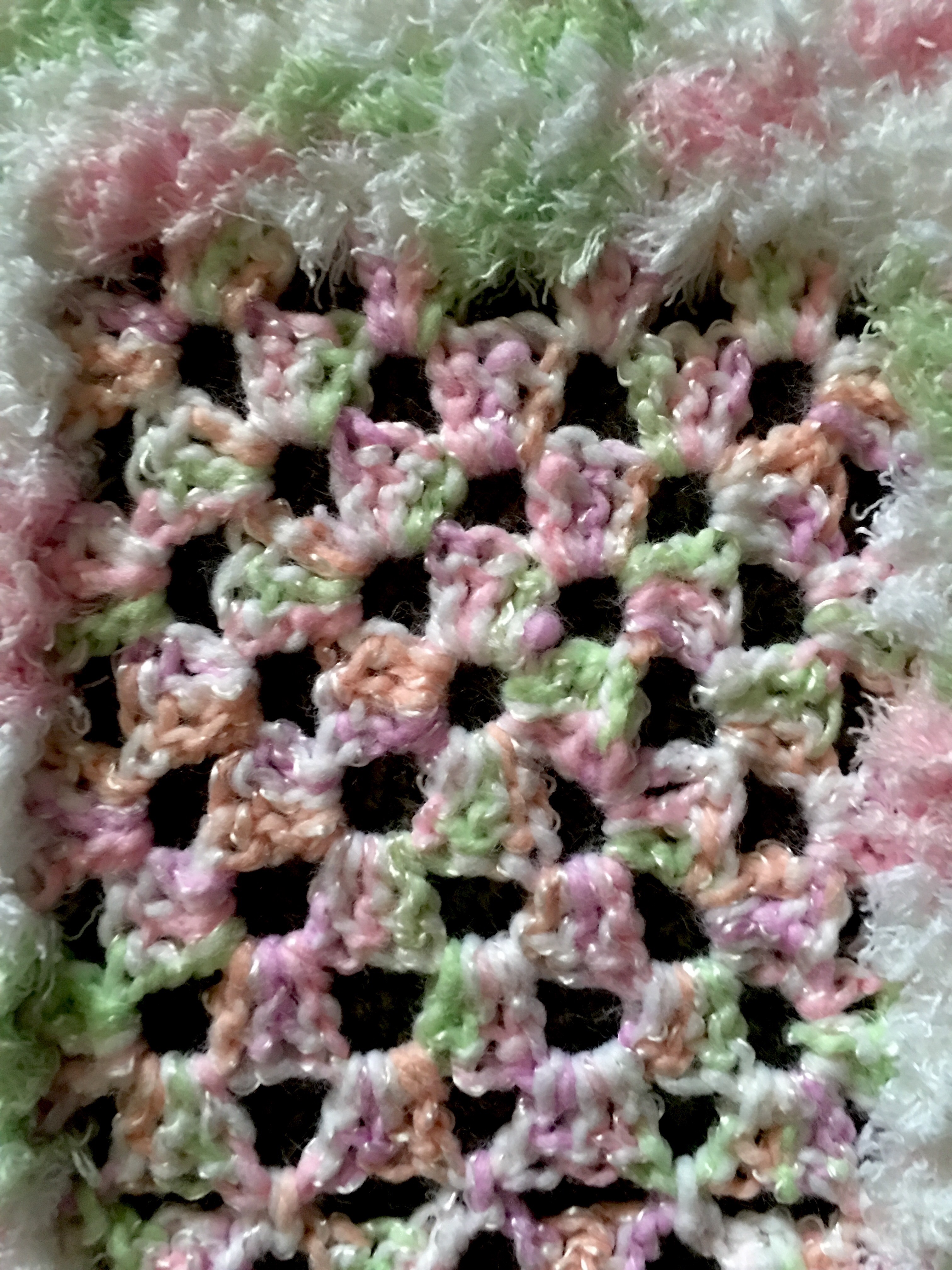 Happy Memorable Monday:). — When my daughter and son-in-law delighted us with the news of our expected first grandchild, my creativity went wild.   I knew I had to make a soft crocheted afghan for our  baby’s cute little fingers to grab onto and peek through the holes. img_1271