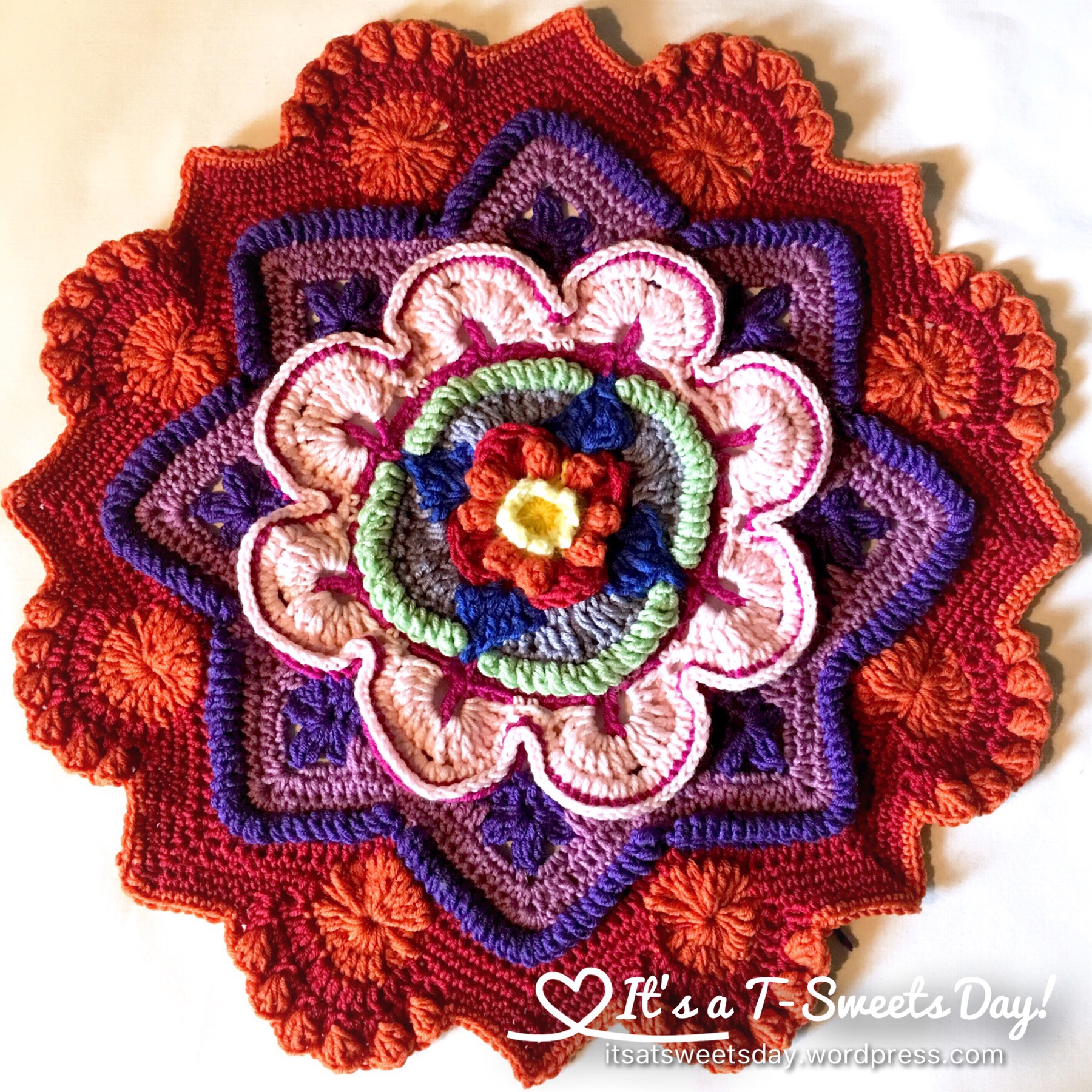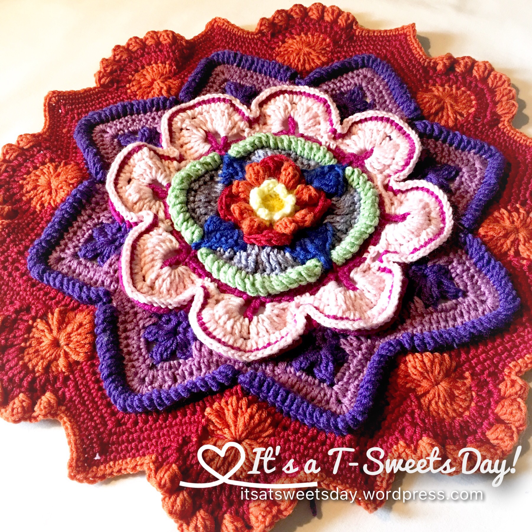 I started! I am half way through CAL part 1. I love the color combos but since the kits were sold out I ordered the yarn per the specifications on “It’s all in a nutshell.” I am a bit disappointed as the yarn is rather thin cotton – size 3mm hook. Your photos and the ones in her tutorial look to be thicker. Oh well – I will keep plugging along. Love the many different stich techniques and watching it all unfold.