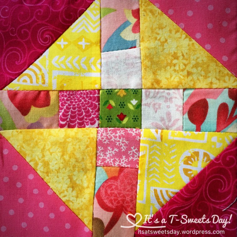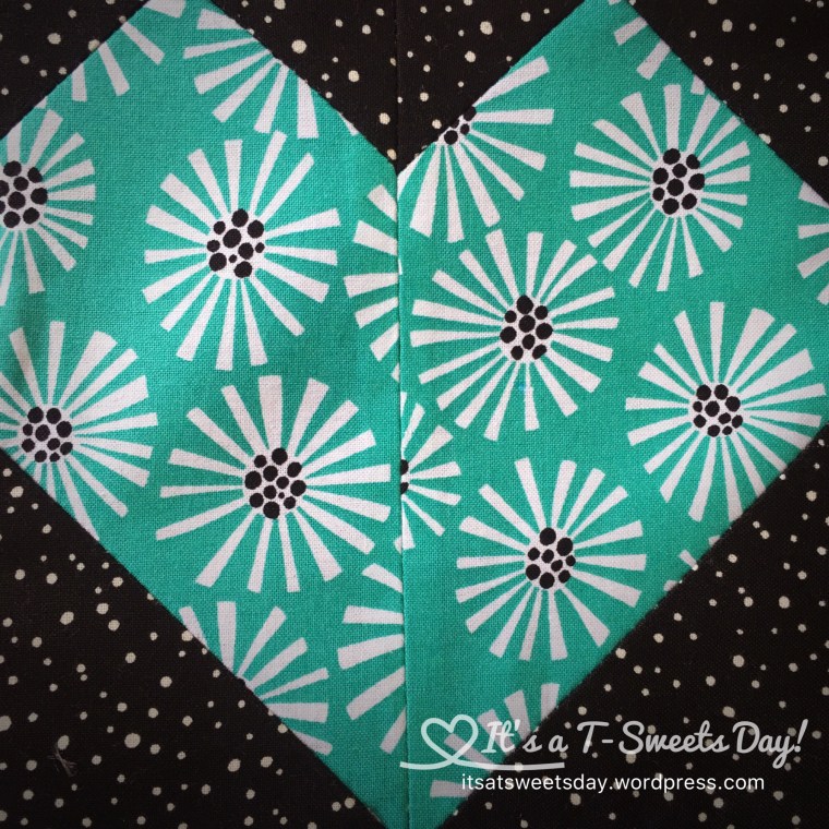 The next new block was quite easy. I like the lemonade pink and yellow. And the teal and black heart looks good too.