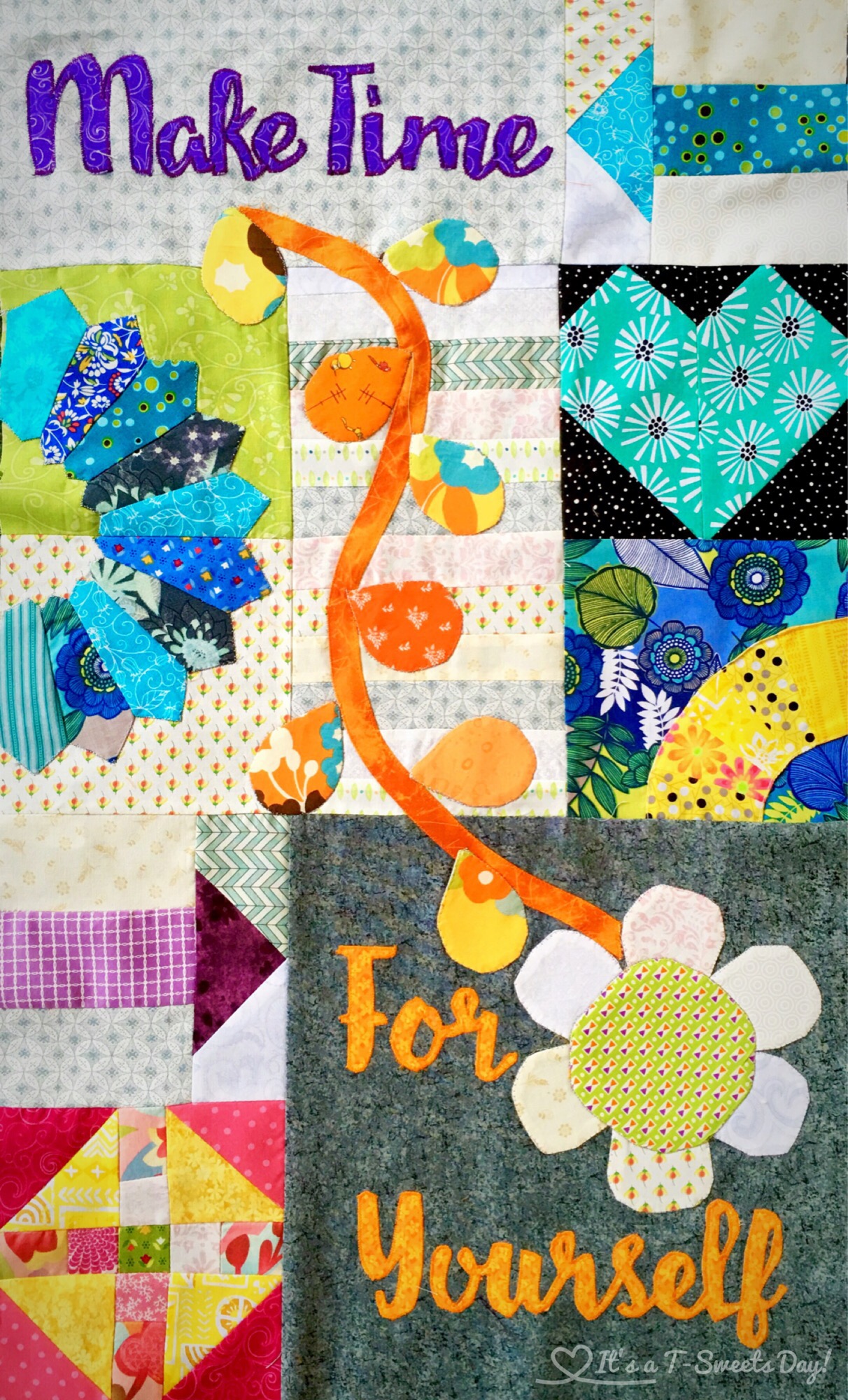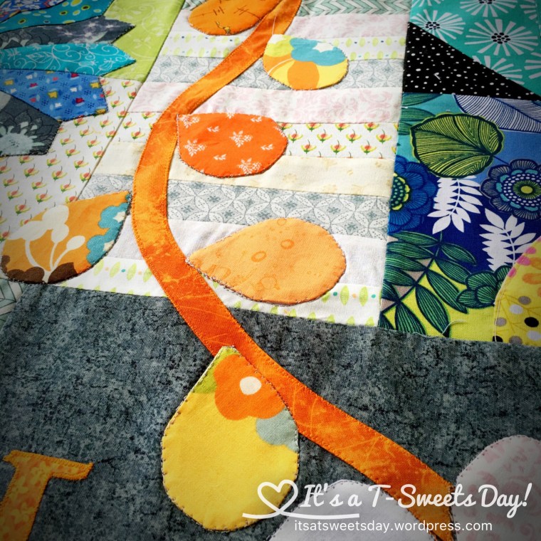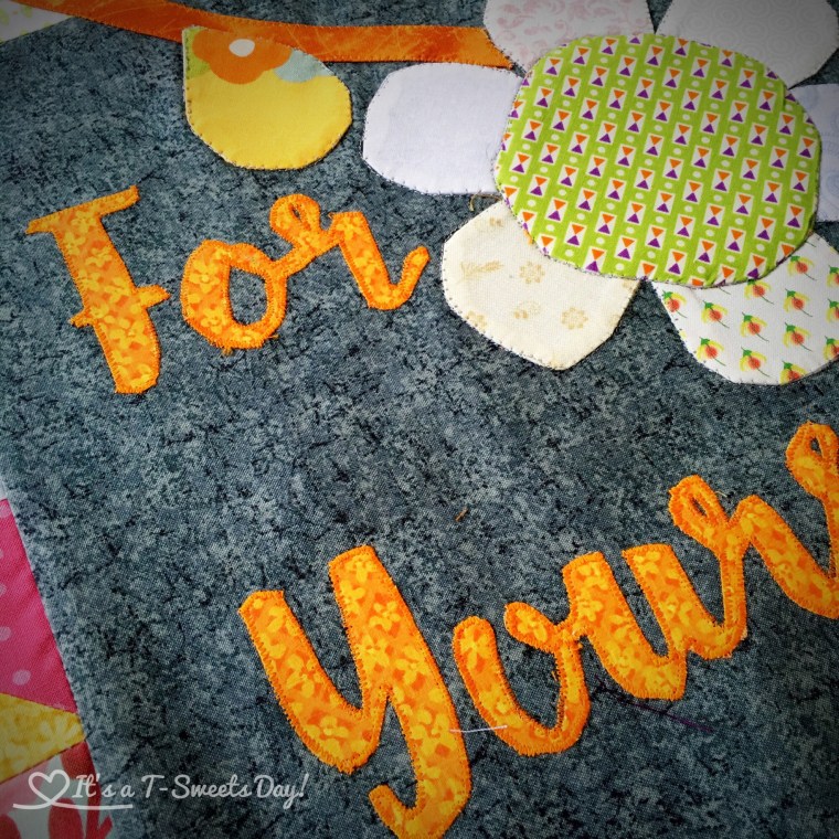 This quilt calls for lots of lettering, but using heat and bond makes it a breeze. I have to use my old Pfaff Tiptronic because my Juki only has a straight stitch.