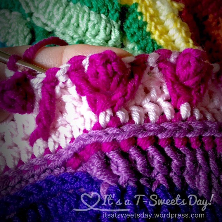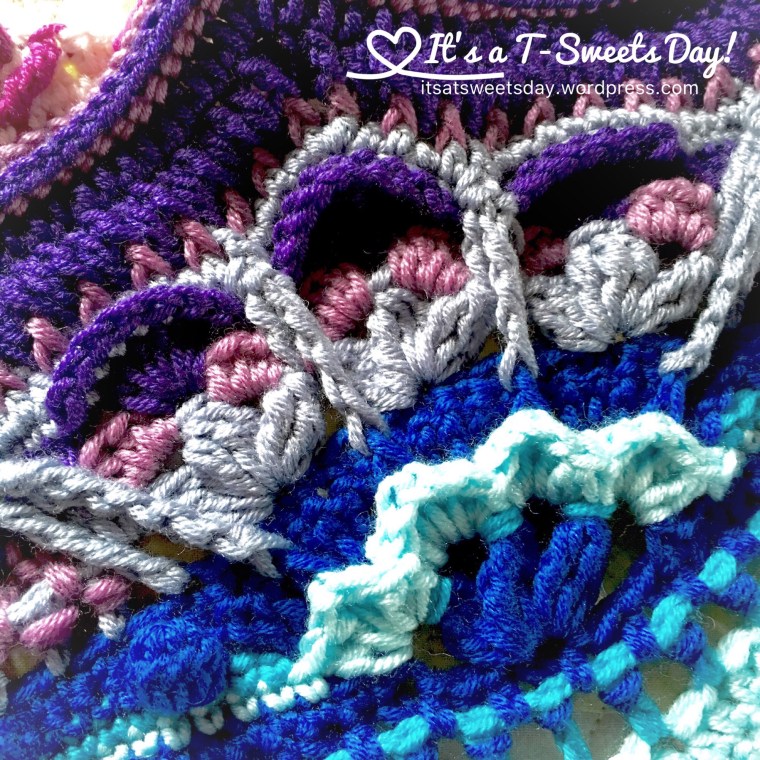 The textures of this afghan are so impressive. They are really stretching my crochet skills. I LOVE it!!  It is amazing to me that Helen from crystals and crochet could even figure out how to design this work of art!  It is beautiful  and I am so grateful for her willingness to share her knowledge and talent with the rest of us:)