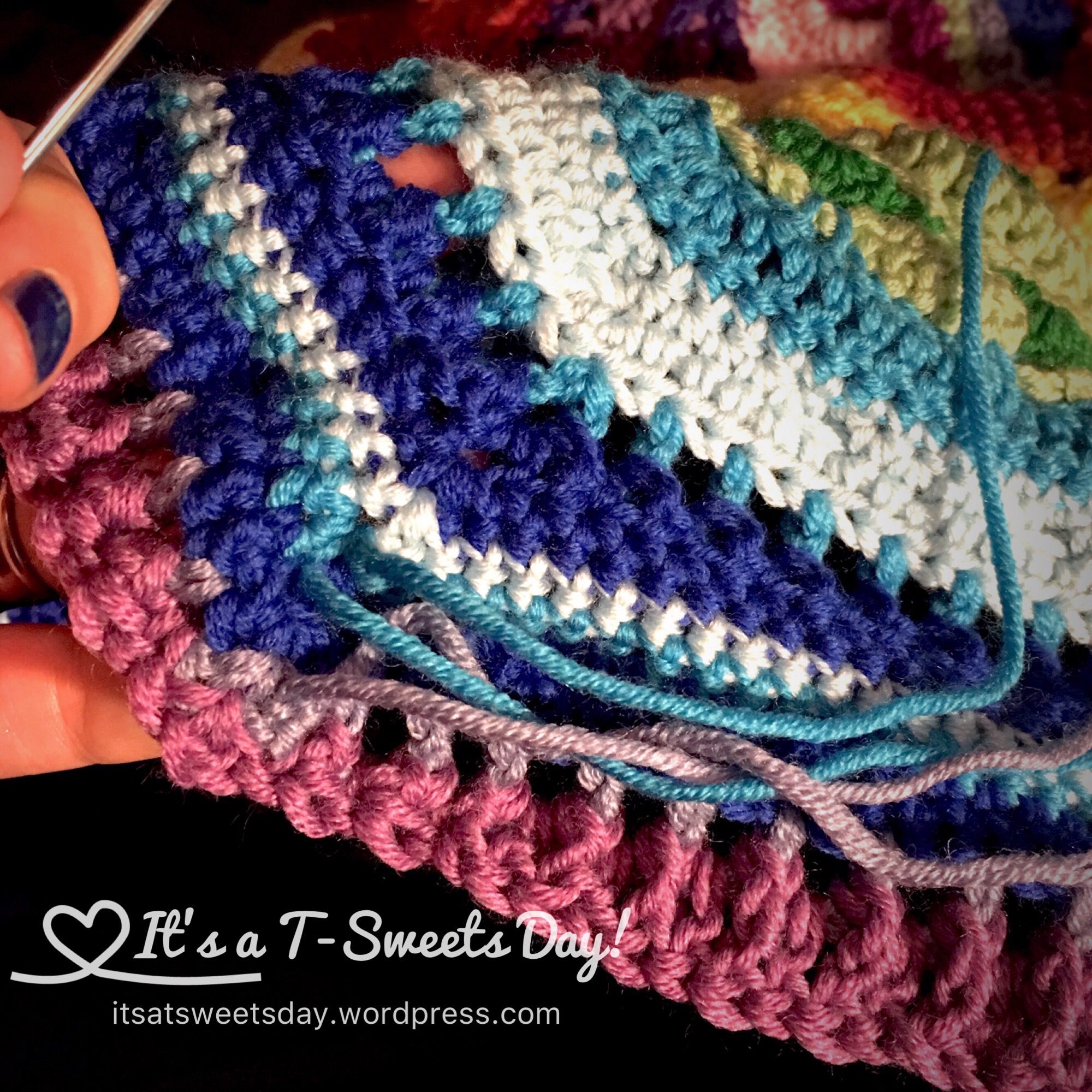 I always leave about 8″ of yarn when I finish with a color while crocheting.  This leaves plenty of yarn to thread in my needle and sew with.   I thread and then weave the yarn into the matching color one way and then back on itself the other way.  I do this at least two times maybe three.