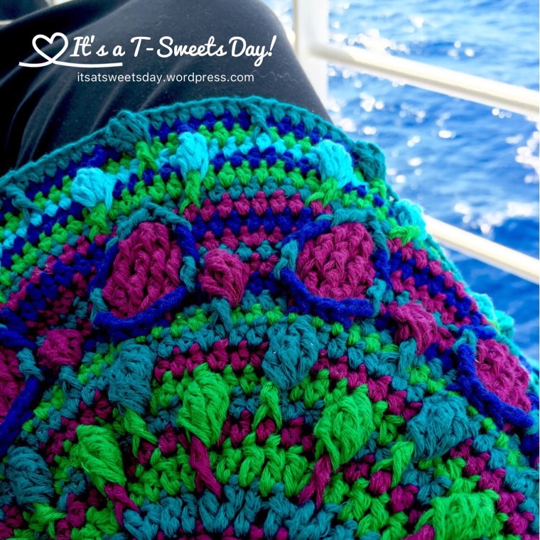 It was somewhat surreal to sit out on the balcony of the ship and stitch away with these beautifully matching, ocean toned threads. I was in crochet heaven to be sure. I even brought it along on our day of snorkeling and relaxing at the Beach in Mykonos.
