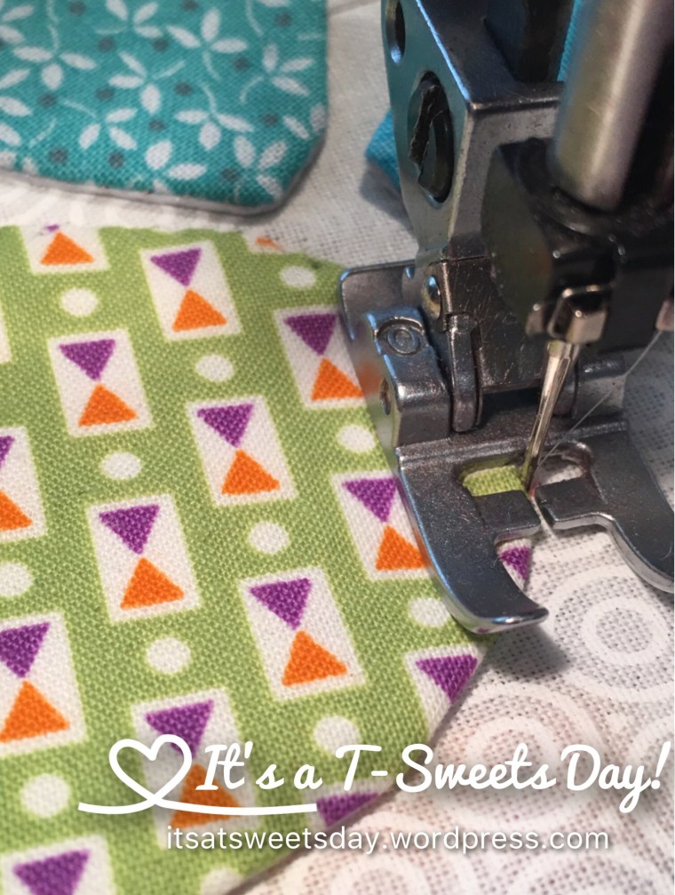 - Now it had the sticky facing side on the back of the petal so I just ironed it to the block and sewed it down. Easy!