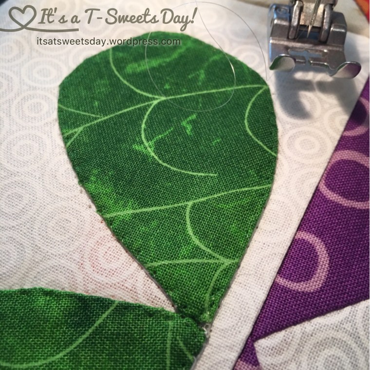 I used a clear mono filament thread to appliqué the petals and flower center. It is almost impossible to see!