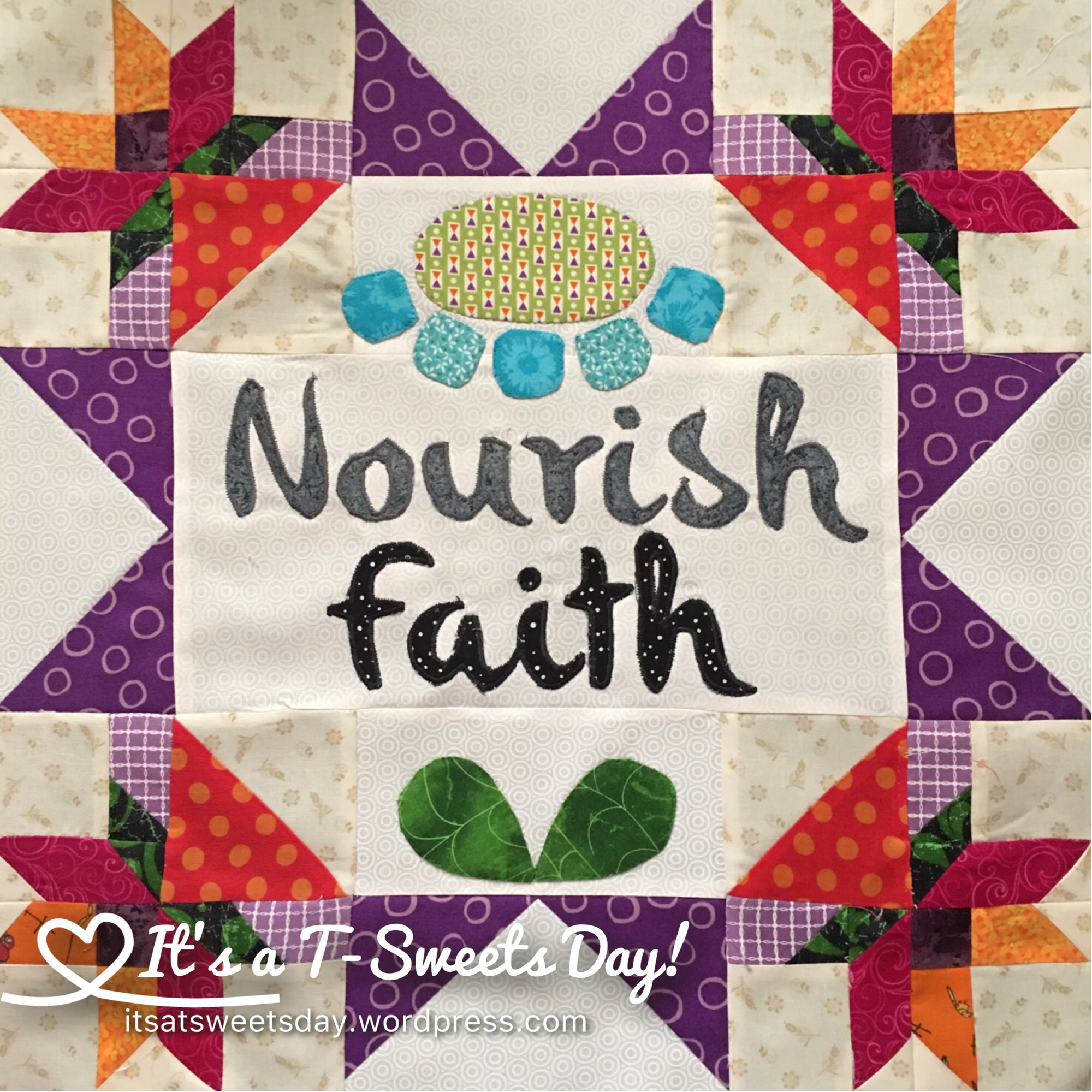 The block itself is beatiful. I like how the words of faith are sort of holding up and nourishing the bloom of the flower. They work together so well!
