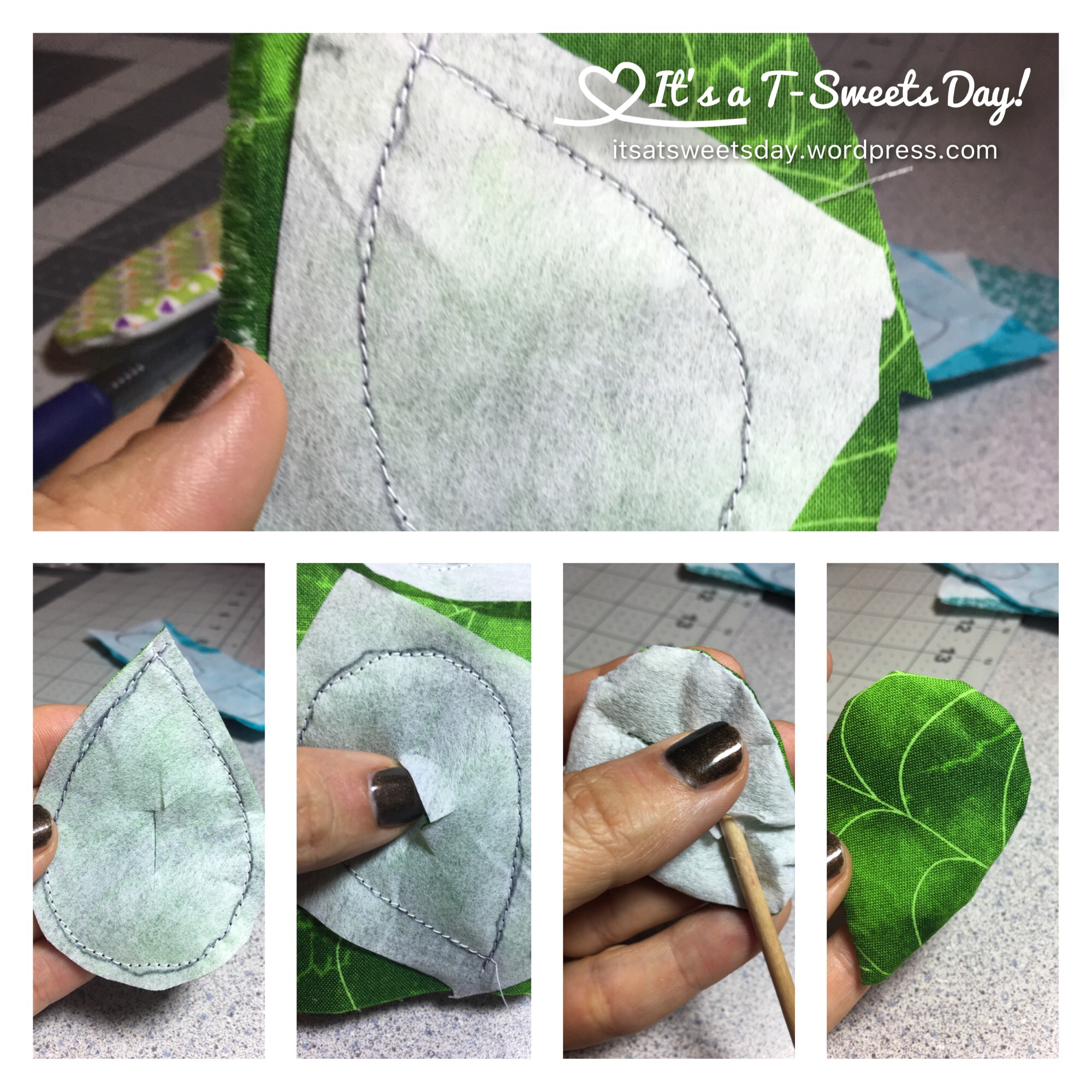 - Now it had the sticky facing side on the back of the petal so I just ironed it to the block and sewed it down. Easy!
