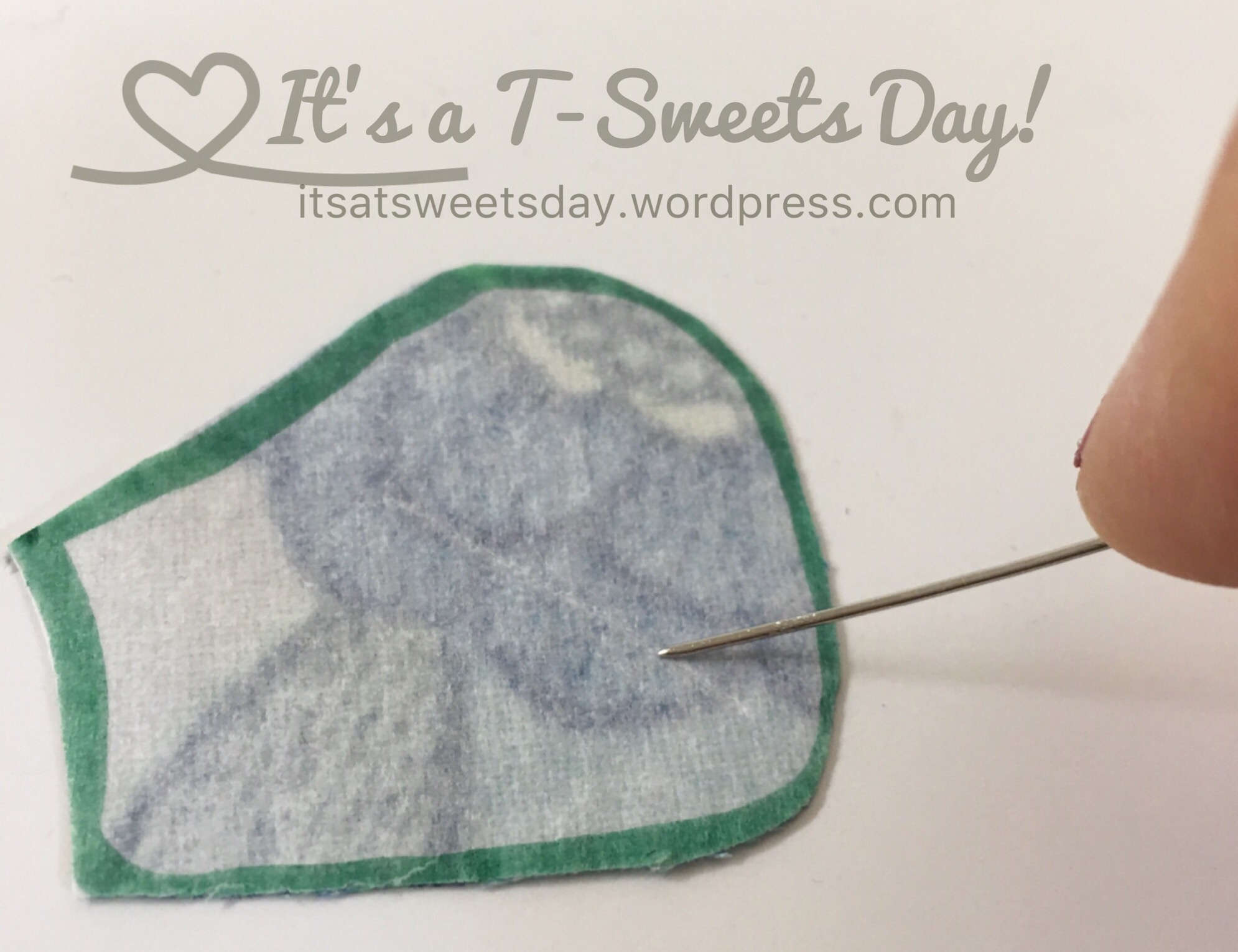 - I traced the pattern to the smooth side of a piece of fusible interfacing. Then I sewed it to the fabric with the sticky side facing the right side of the fabric.