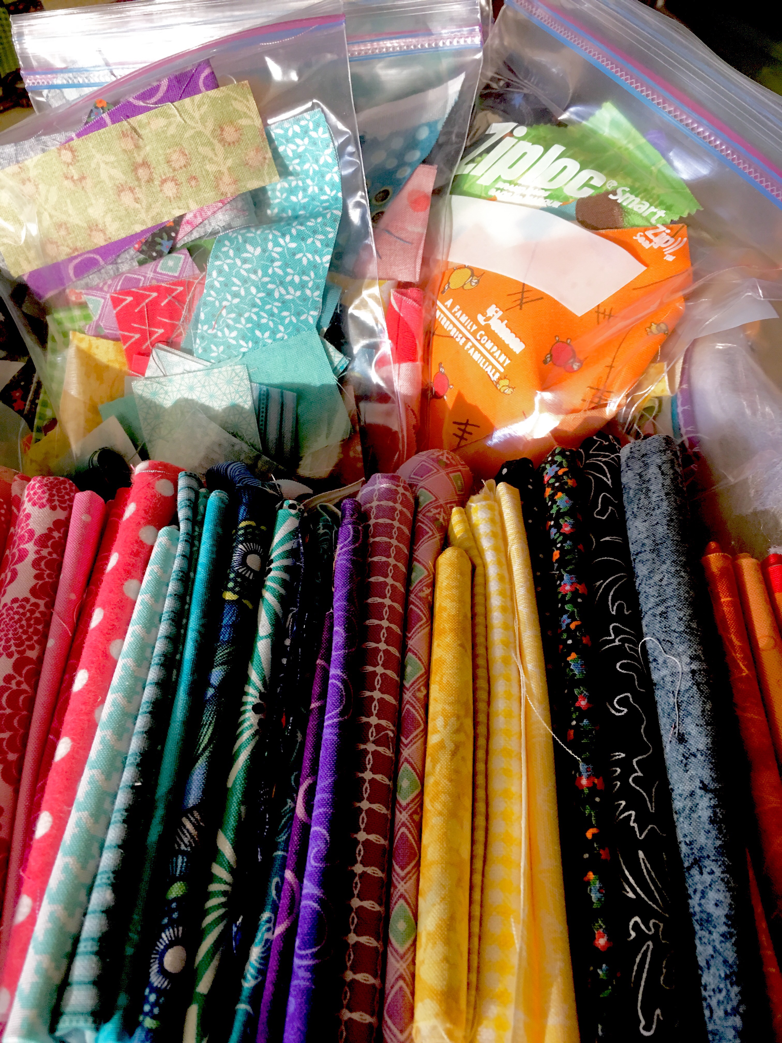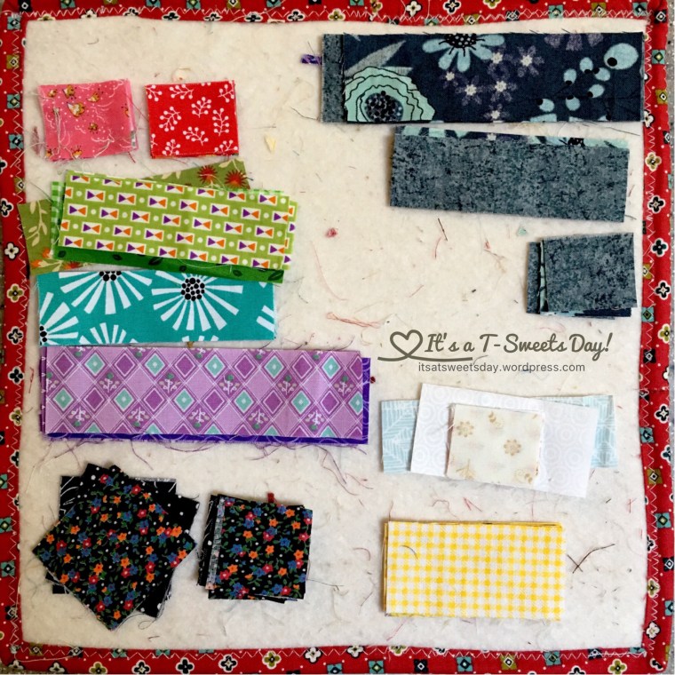 Before I started sewing this chapter, I organized my box of fabrics. It had gotten so messy and hard to find the sizes and colors I wanted that it was a little frustrating just picking my colors. I am glad I took the time and put my like sized scraps together.