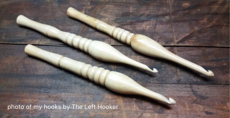 A few weeks ago, I special ordered three custom Rowan wood crochet hooks from Mo at The Left Hooker.