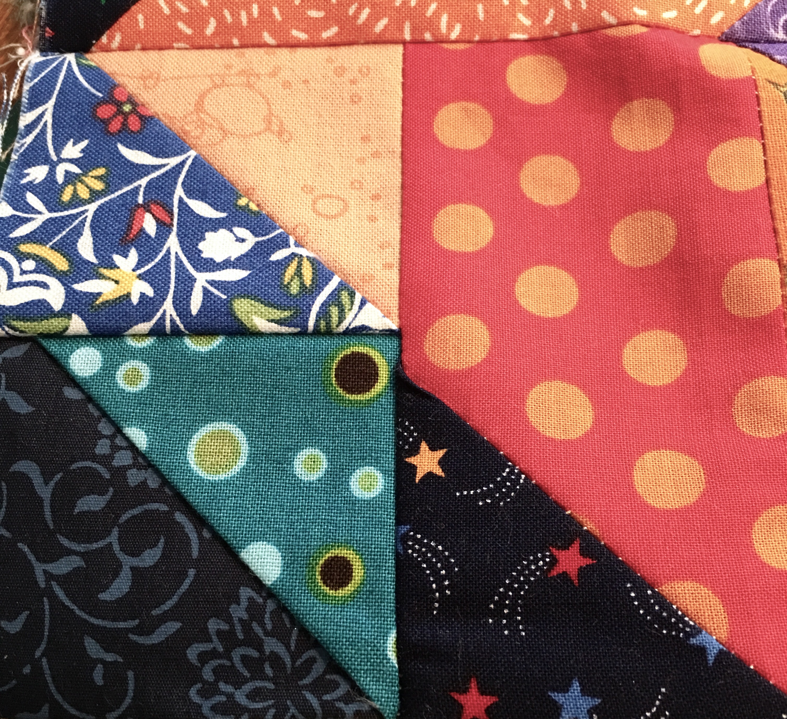 Good ideas! I have always pressed on the long seam and pressed to the dark. But I might try pressing across the point first on these tricky point patterns. Pressing perpendicular to the seam… I wonder? Maybe even a few hand stitches of basting instead of a pin?…