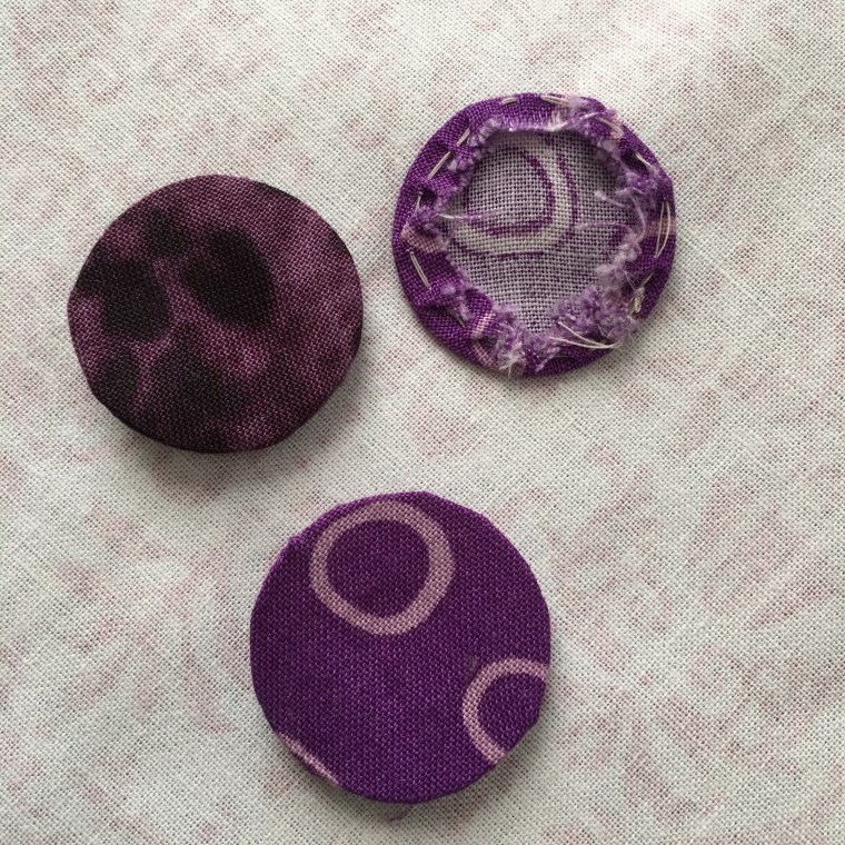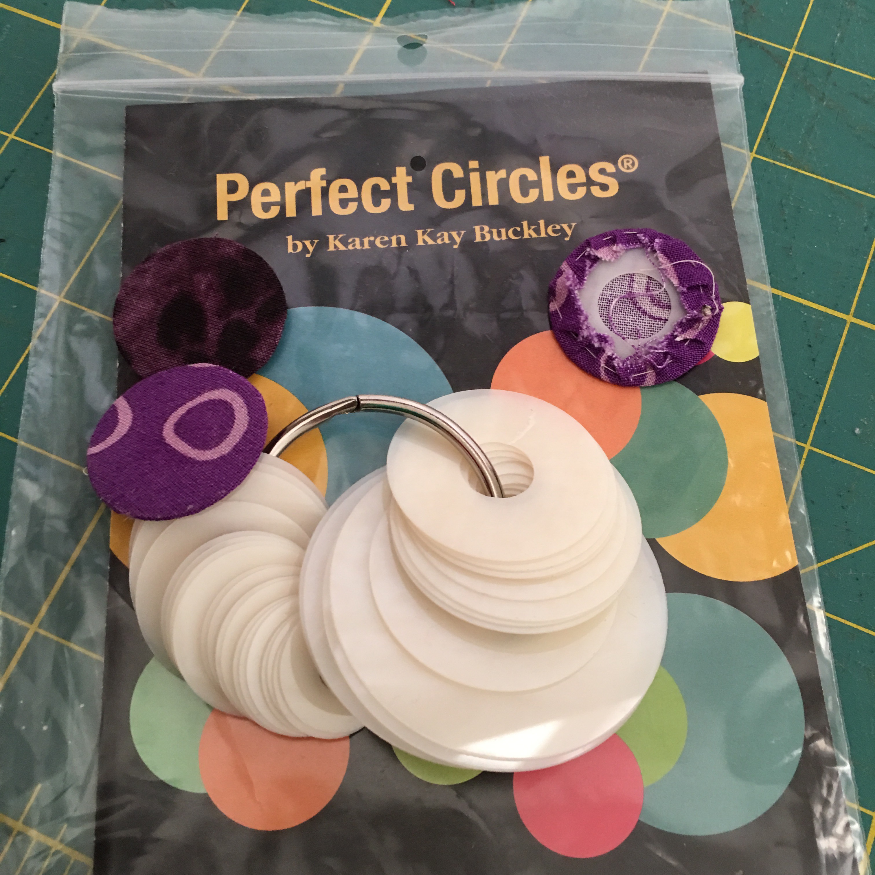It was easy to get these perfect circles by whip stitching around the template and ironing right over the plastic. I sprayed them pretty heavily with starch as well. When the circle was dry and cool, I just had to snip one running stitch and pull the template out for these perfect circles!