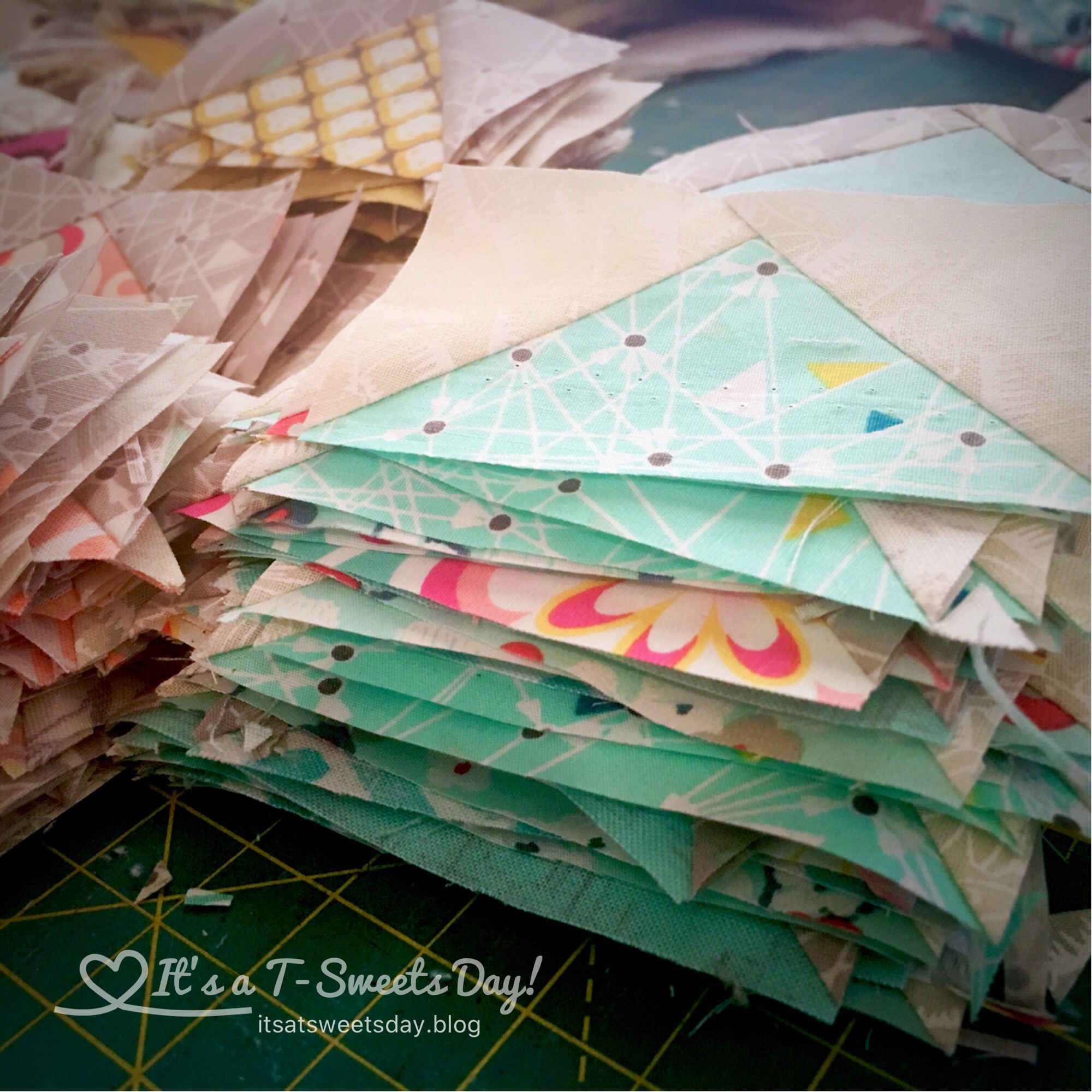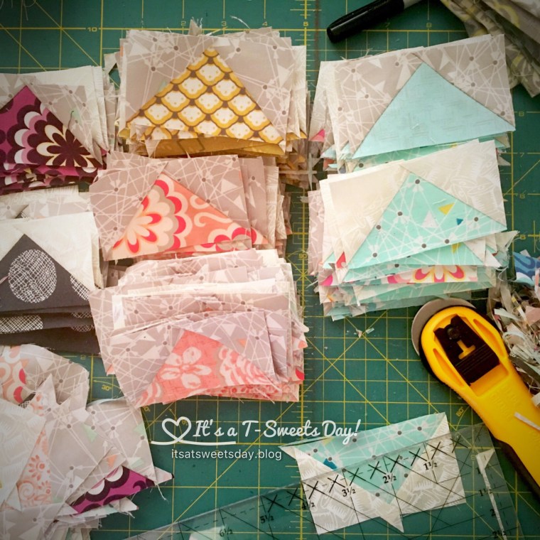 Okay, maybe I sound a bit whiney, or probably a lot bit whiney, but hey, I made 350 flying geese today!   My eyes are blurry and my head is kind of fuzzy.  I only kept working because I didn’t want to do them tomorrow.If I would have just used the stitch and flip method, I could have saved hours of time not to mention my hands!  But no…I  decided to use my Wing Clipper ruler because there is very little waste with this method, and I am at the bottom of my fabrics.