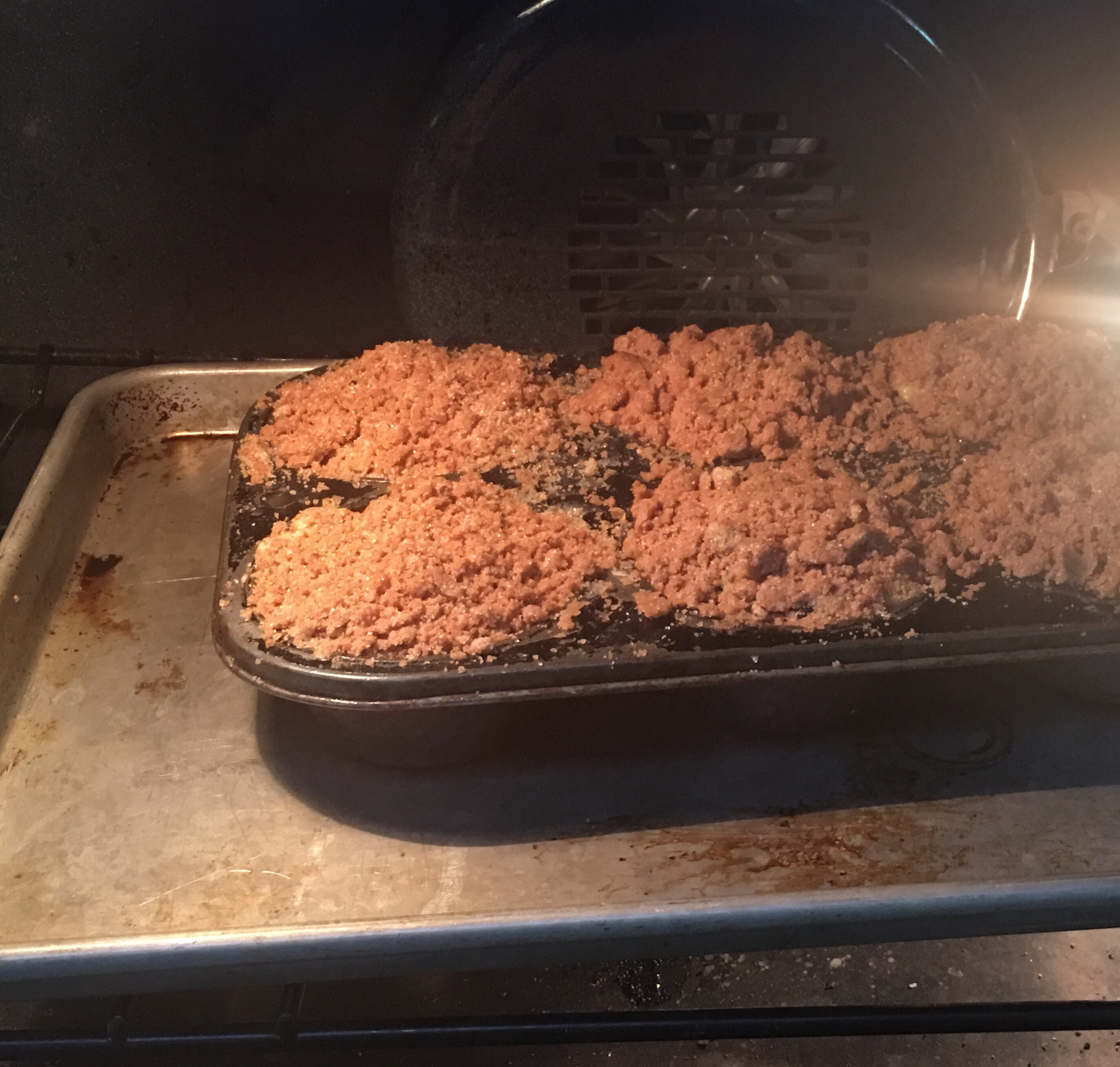 I scooped the sticky dough into the pans filling the cup all the way to the top. I covered the muffins with an extra amount of the super wonderful crumble mixture.