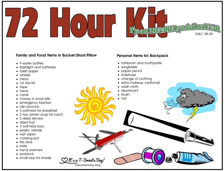 I am so glad that I have these kits done. They are sitting on a shelf in my basement just waiting there in case we may need them someday.