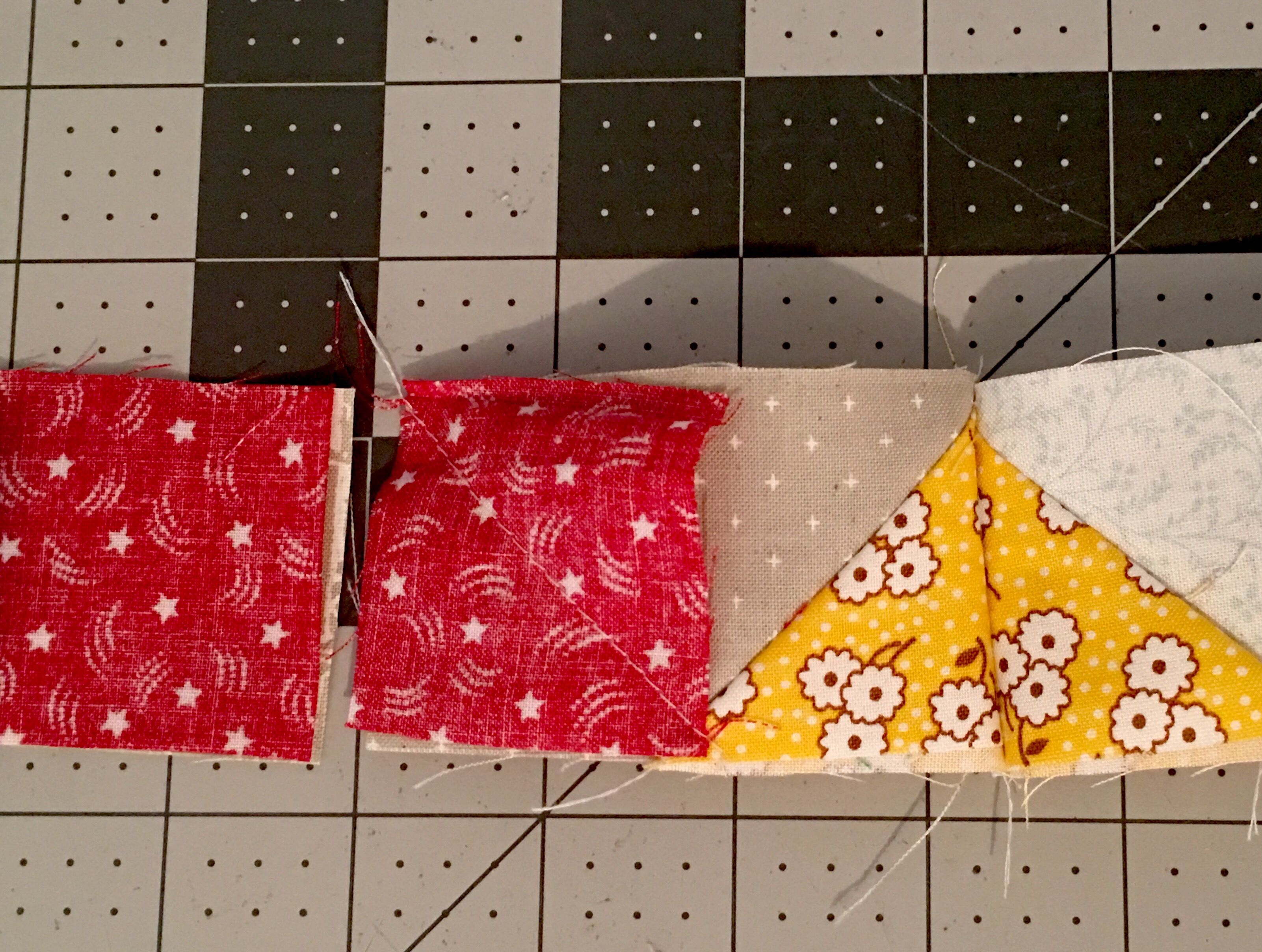Sewing the larger blocks was just a matter of sewing them all together without any real need of color matching. That can not be said for the long skinny rows