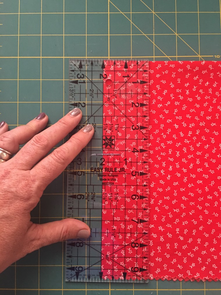 • Fold your fabric if needed and square it up by cutting a small amount off of the right edge.