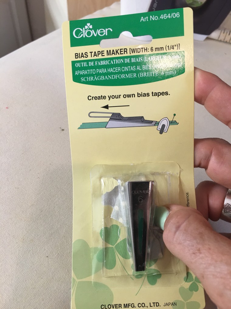 Next I started working on my 1/4″ bias tape. Yep, you heard me right, 1/4″! Luckily I have a 1/4″ bias tape maker.