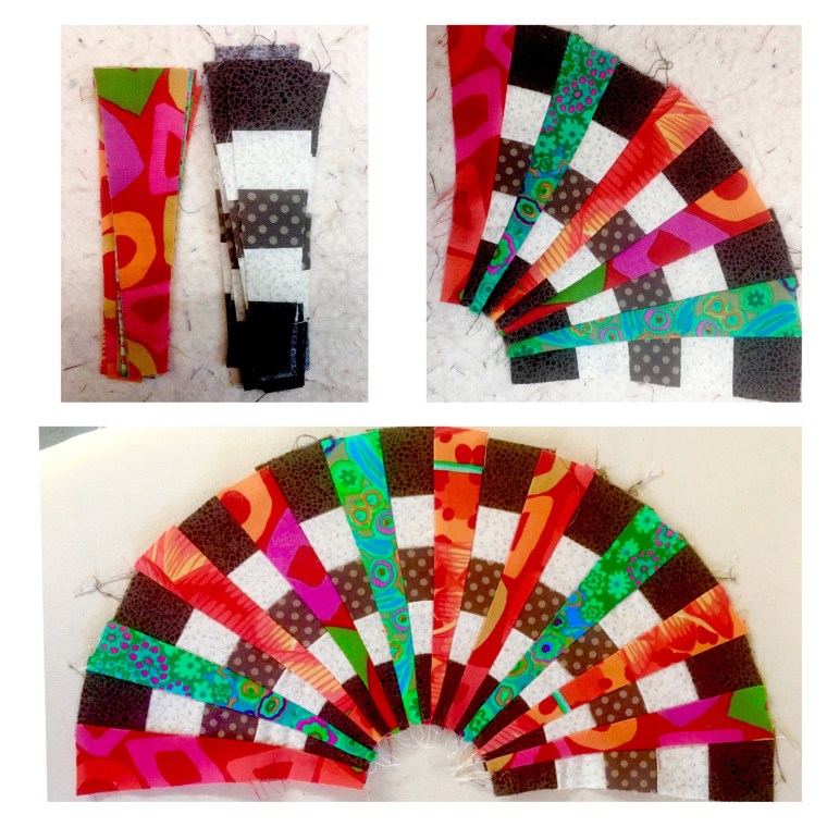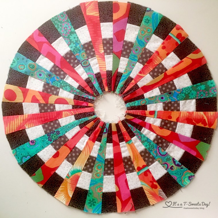 I sewed the wedges into four arcs and then joined them to make one wild circle
