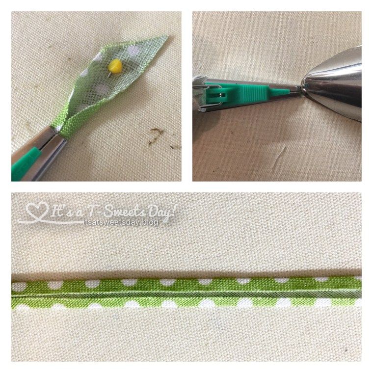 - Yea! A beautiful 1/4″ piece of bias tape. Easy!!