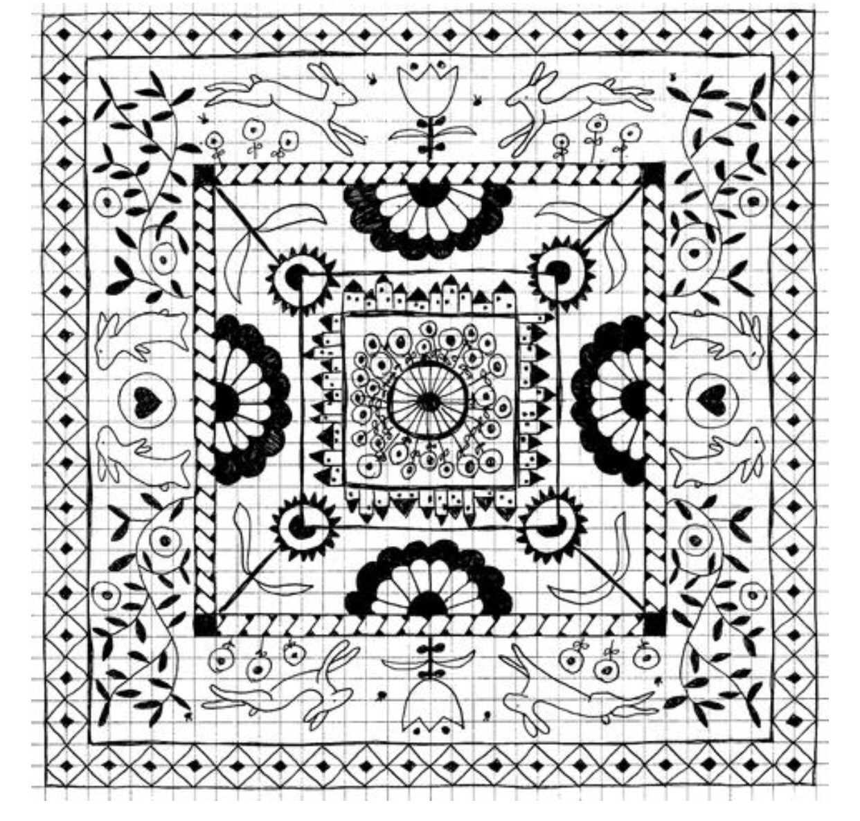 I am FINALLY starting my Down the Rabbit Hole Quilt by Sarah Fielke. This is a monthly Quilt Along program that started back in January. At first I thought I didn’t need another Quilt Along and I really don’t. Also, I wasn’t overly enthused by this sketch of the quilt.