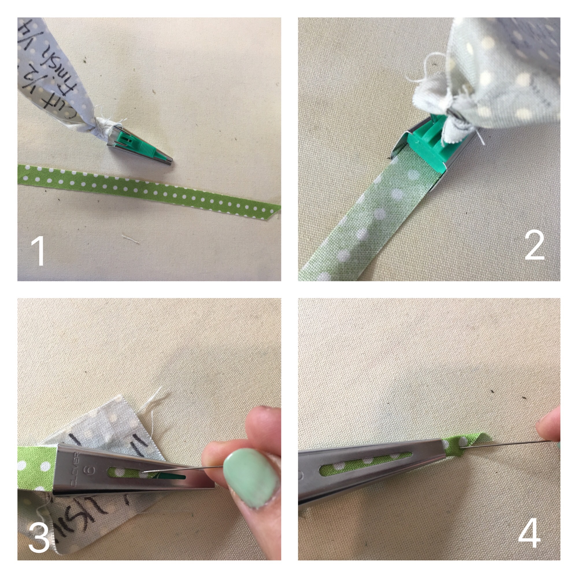 - Yea! A beautiful 1/4″ piece of bias tape. Easy!!