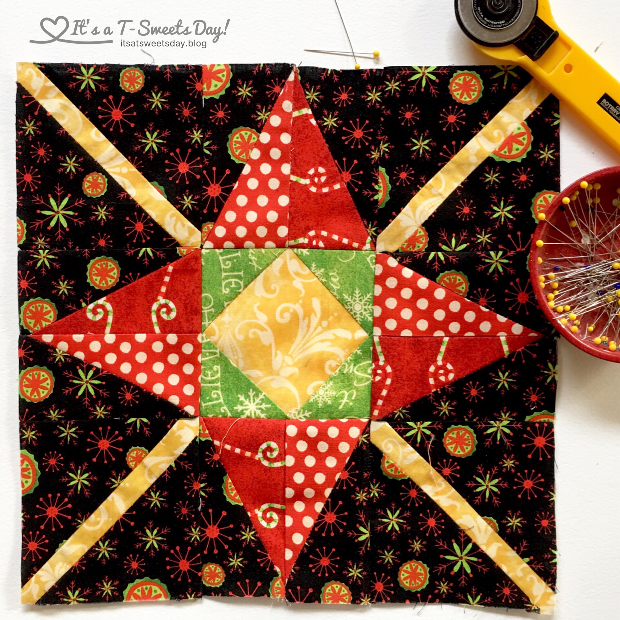 It was another fun sewing day as I pieced my North Star Block for the I Wish You a Merry Quilt Along. This block was designed by Kathleen @kathleenmcmusing.blogspot.com