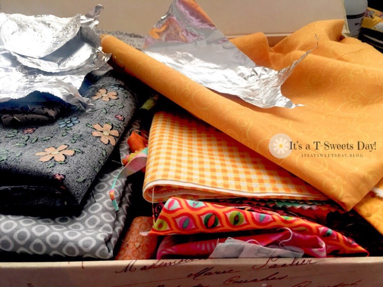 My box of fabric is way more messy than I like, but I am grateful for the box to keep everything together. My rushed cutting and circle making wasn’t all that neat and tidy either.