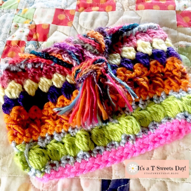 I was especially surprised to receive a package in the mail from my online friend Tina @ Kristabella’s Hodgepodge. I must admit that tears came to my eyes as I opened the package and read her sweet Get Well note and beautifully crocheted bag.