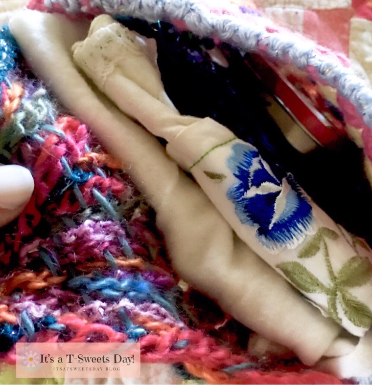 I filled my new crocheted pouch with handkerchiefs and mints. It is the perfect size for my Sunday bag. I will have SWEET thoughts of her each time a tear comes to my eye at church. ❤️