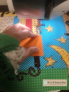 I will be giving this quilt to an elementary school teacher, so this bright colored pallet quilt will be hanging in a classroom. Isn’t that SWEET?!
