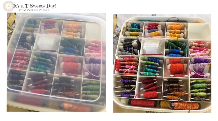 Your work is always spectacular even with the broken wrist dilemma! What a great way to organize your threads. Darn case for not locking closed. Doesn’t know we have enough challenges without it not closing. 🙂