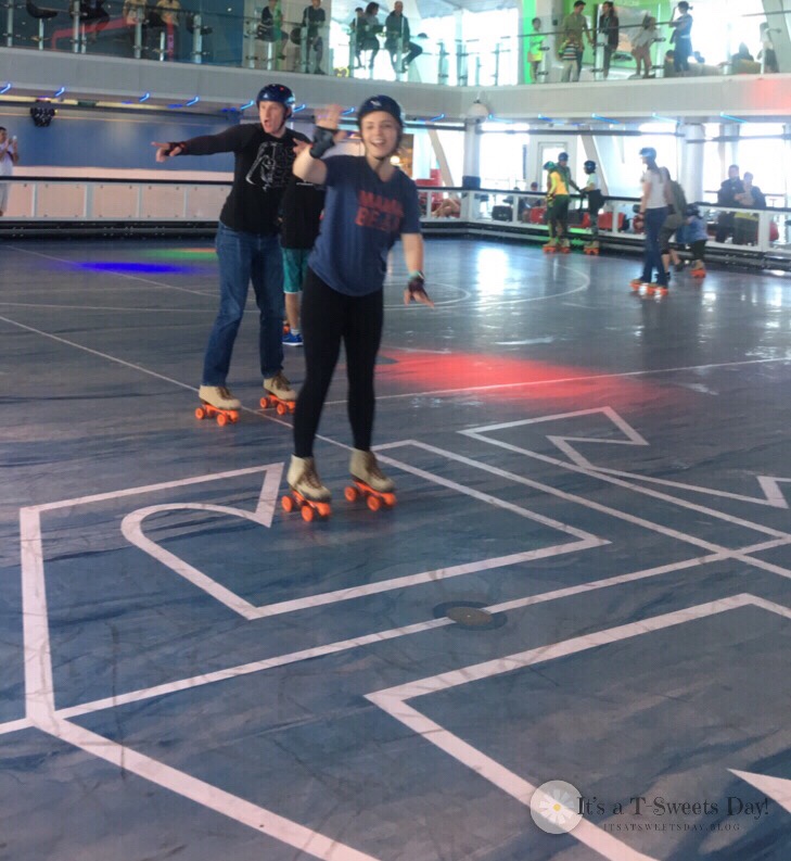 The sports deck converts into a roller rink or bumper car rink periodically throughout the cruise. They only let a few skaters or drivers on the rink at a time so be sure to sign up early.