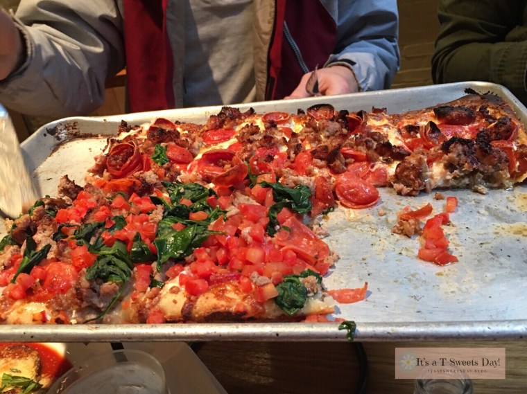 We had a pizza that came out in a square pan and an order of eggplant parmesan. Really, they were to die for!!