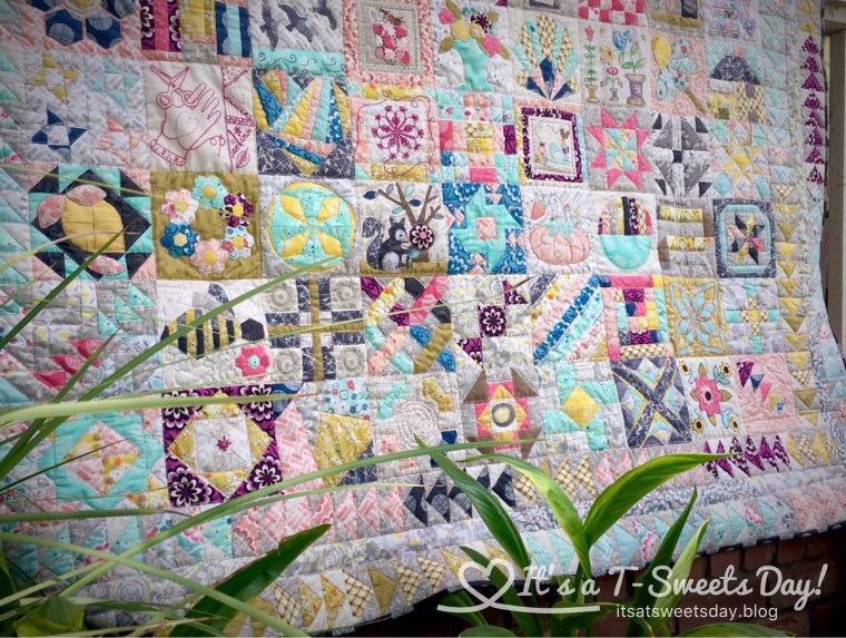 This was an adventure in Quilting online with 50,000 other like minded quilters! Some of us were more experienced than others, but it didn’t matter at all. I met some wonderful people and learned that I really like embroidery on my quilts:)