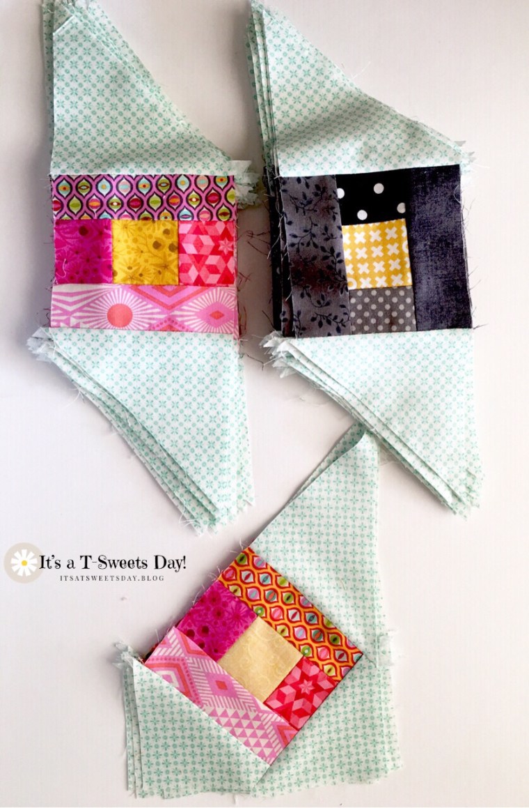 After I sewed my squares, I added some triangles to the sides to make them stand on point. They look a bit odd at this stage.