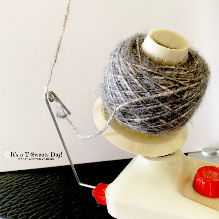 When you buy yarn in a skein, it needs to be wound into a cake or it will get all tangled up. A nifty yarn ball winder makes the job a breeze! I bought mine on Amazon several years ago. It is a life saver!