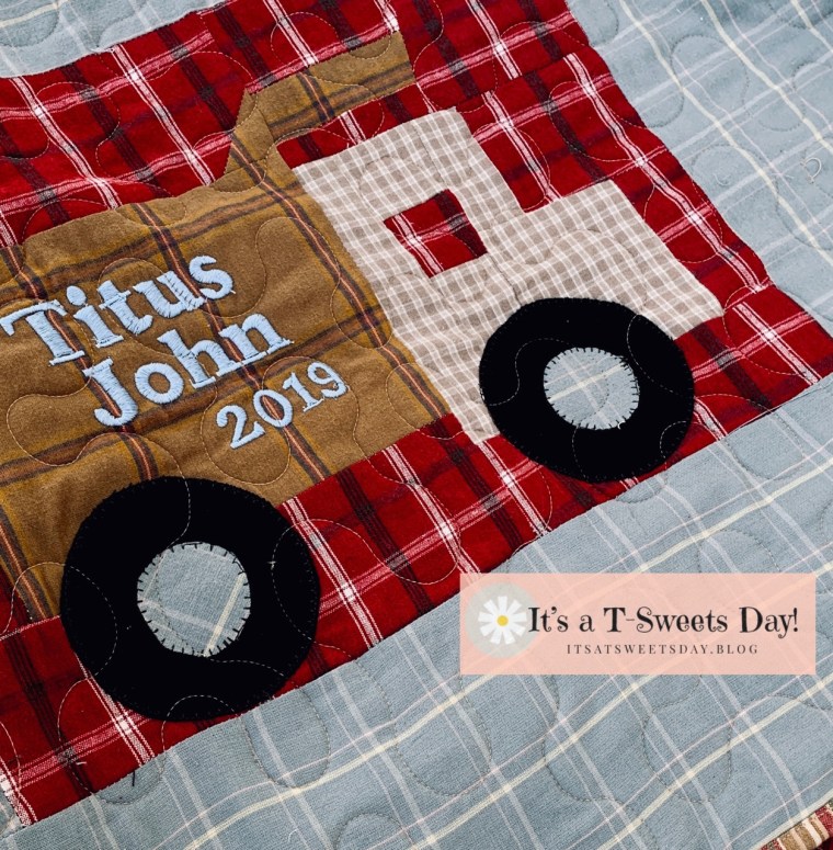 Such a fun quilt Tracy! I love the big wheels and all the different trucks. Titus, what a great name!, will love it for years to come.