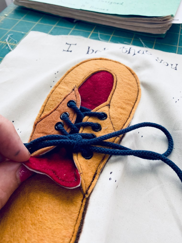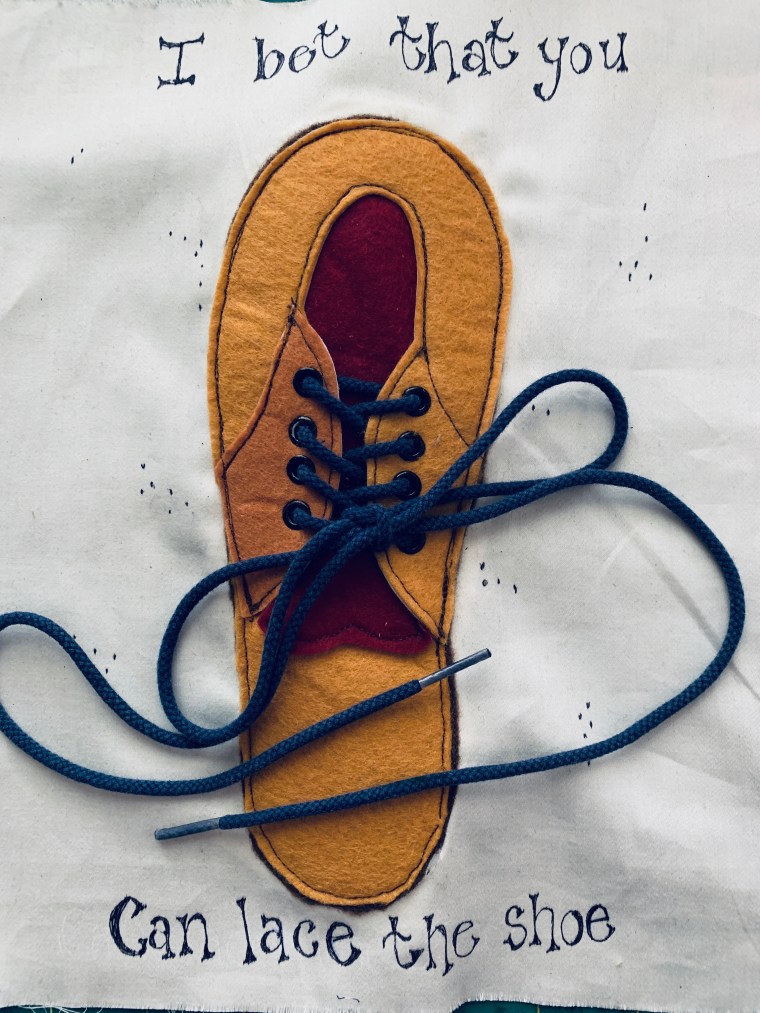 And a quiet book is not complete unless there is a shoe to learn to lace and tie:).