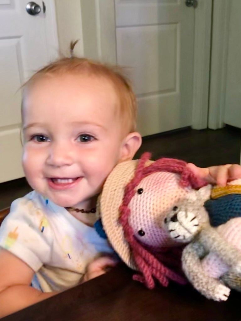 I was so excited to have my little Cleo open her present and give a big hug to her new doll and chew on the cat and drag her around by the arm, But….
