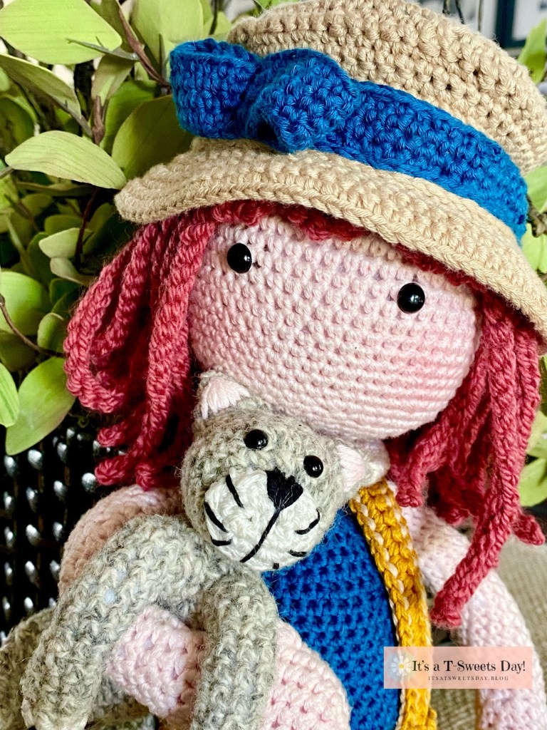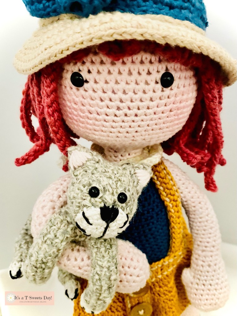She made me smile every step of the way. I made sure to sew down her hat, dress, and the cat to make sure they don’t get lost with little hands playing with them