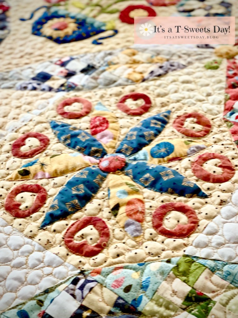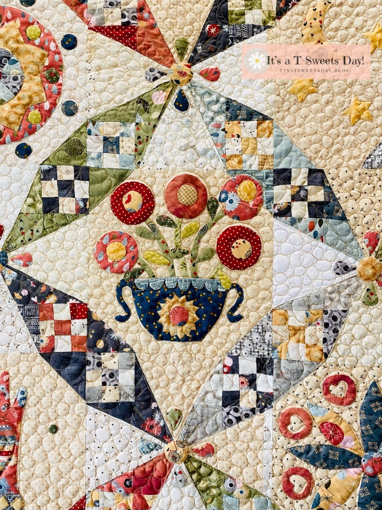 Appliqué Flowers make me smile. :). It is hard to believe that it wasn’t that long ago when a needle turned appliqué project seemed overwhelming. Now I just LOVE it!