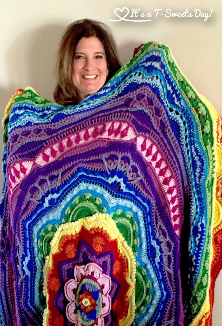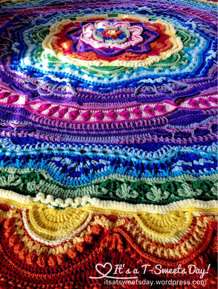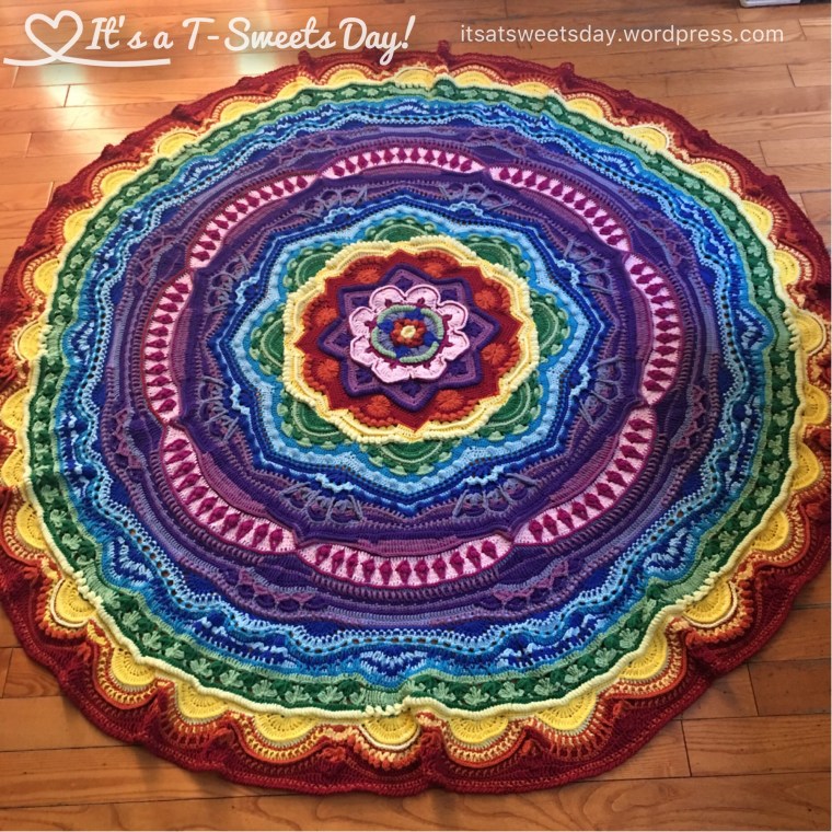 Am I insane?! I just made a 6ft+ Mandala! This thing is HUGE! I have learned many new stitches and techniques. All of them were so very fun. Each round was something new and beautiful.