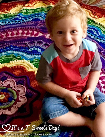 And absolutely nothing can beat a cute little 2 year old with his happy smile about being on a new blankey!