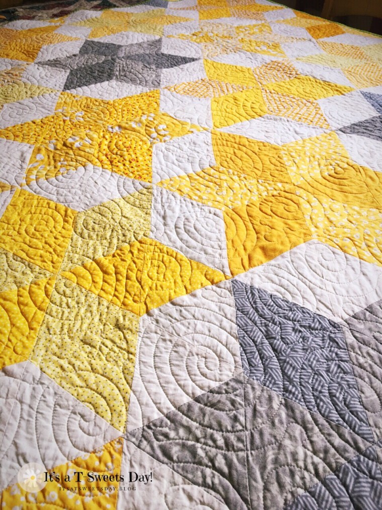 Isn’t it cute?! I love final photo shoots. It feels like a celebration of all of my hard work. The quilt gets to shine out it’s unique purpose and beauty.