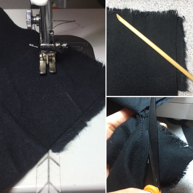 - Sew to the corner leaving a close guessed 1/4″ inch unsewn.