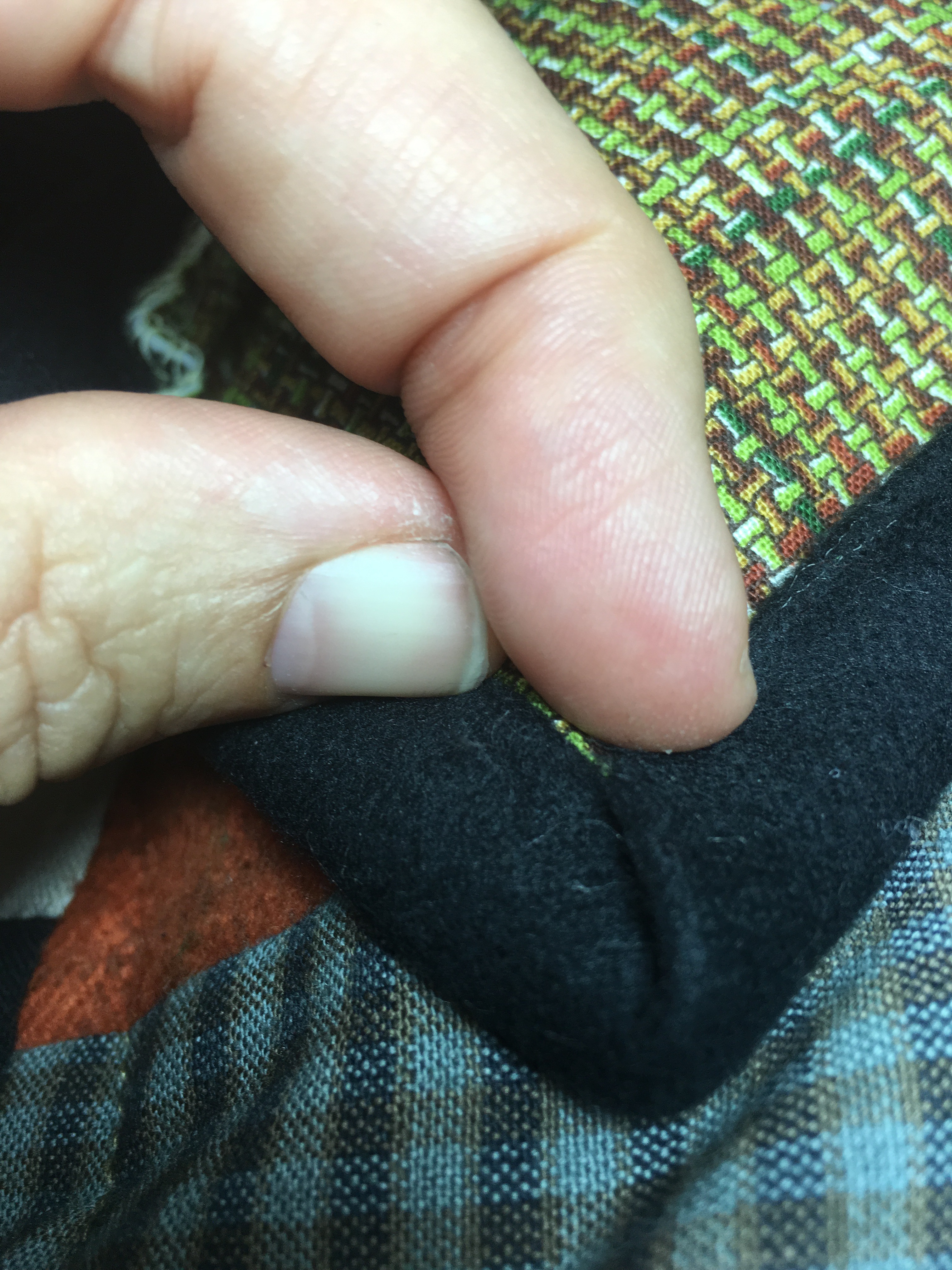 - Hand sew the corners closed for a PERFECT corner:). Yea!! This is optional, but I like how it really matches up the fabrics.