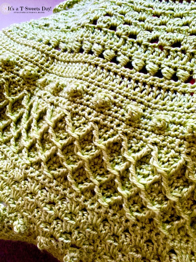 Now, why have I finished so few? Well, my evening sewing has taken a turn to baby crochet, yea!! My daughter in law is expecting baby number two at the end of February. She asked for a green blanket, but didn’t pick a pattern so I am free to let my creative juices flow. And oh, the flow!