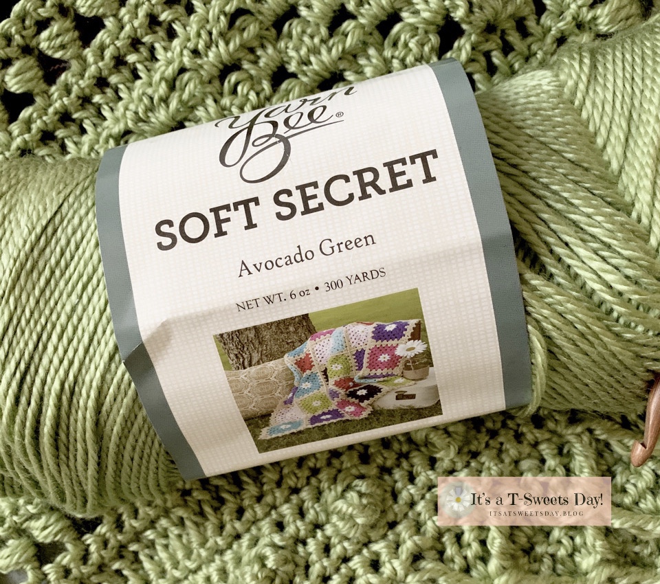 The yarn is Soft Secret Yarn Bee in Avocado and is so so soft. I tried the actual “baby yarns” but the light texture just didn’t match the sensory theme.