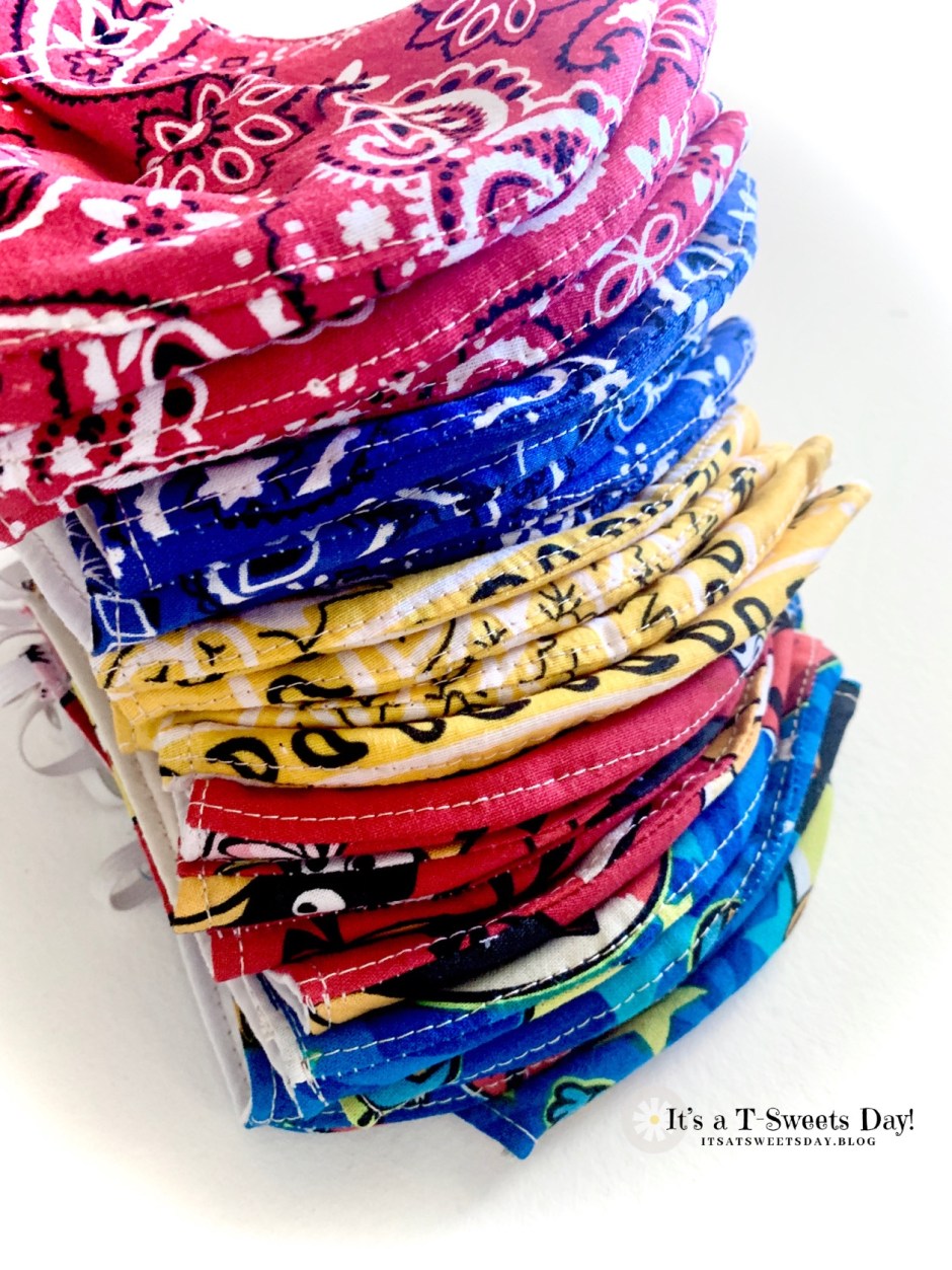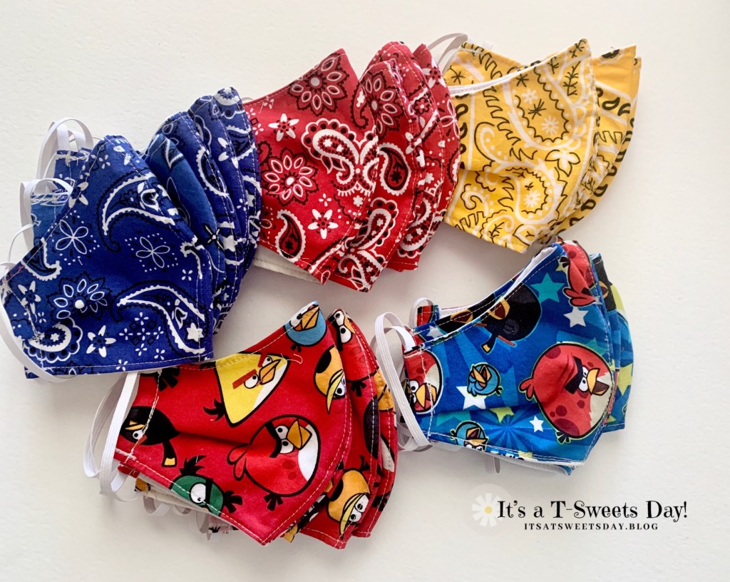 I was able to chain sew these colorful masks and had 21 done in an evening of sewing. SWEET!!